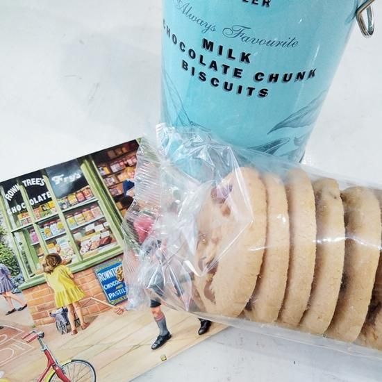 ミルクチョコレートを贅沢に使用した、紅茶やコーヒーにもピッタリのビスケットです。