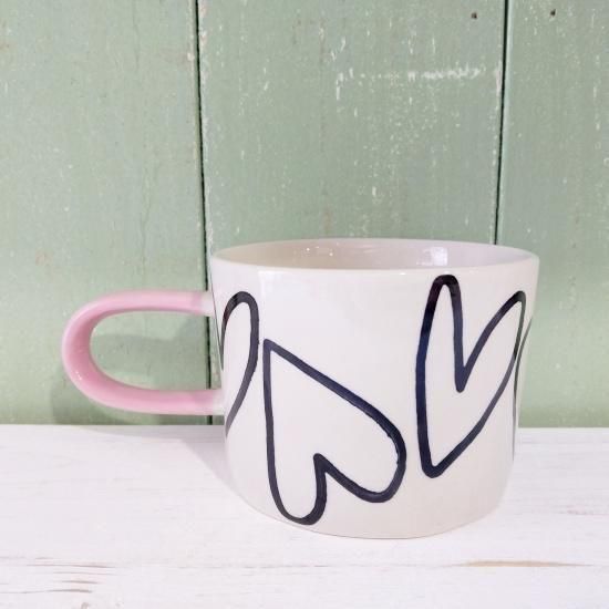 【期間限定12/31まで】caroline gardner 「MONO OUTLINE BIG HEARTS CERAMIC MUG」英国キャロラインガードナー マグカップ