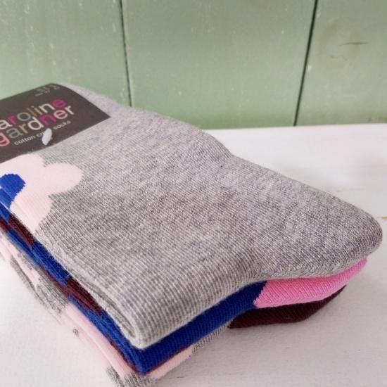 【期間限定12/31まで】caroline gardner 「3PK JACQUARDLT GREY/BLUE WITH FLOWERS」靴下3点セット 英国キャロラインガードナー