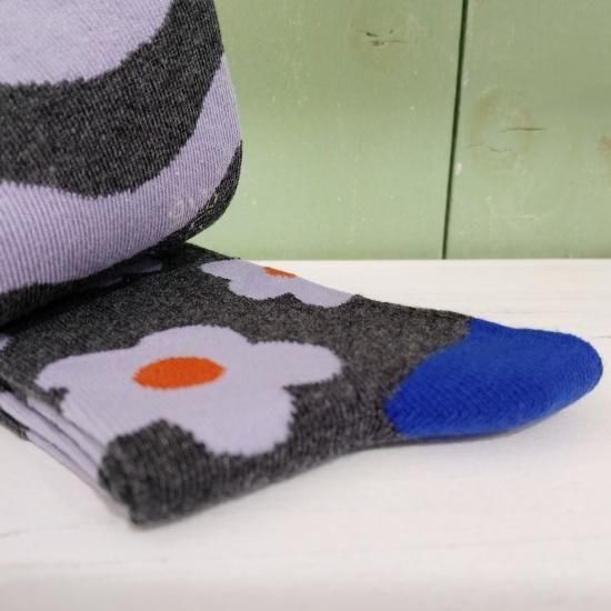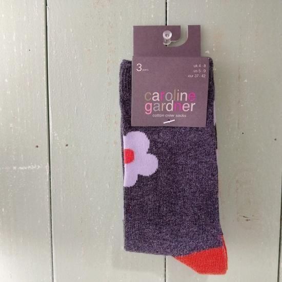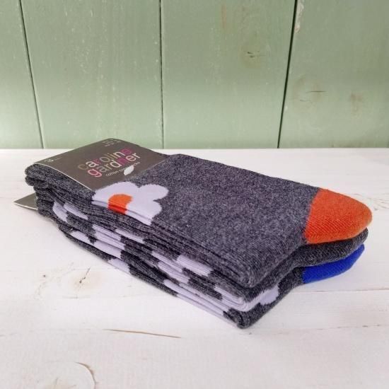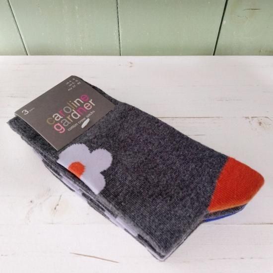 【期間限定12/31まで】caroline gardner 「3PK JACQUARDCHARCOAL WITH FLOWERS」靴下3点セット 英国キャロラインガードナー
