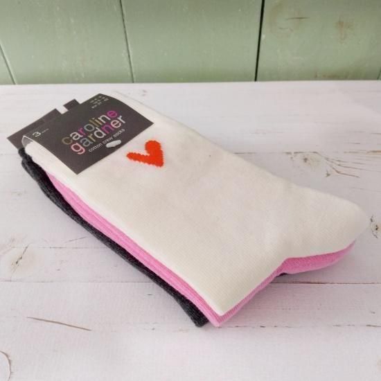【期間限定12/31まで】caroline gardner 「3PK PLAINSNOW/PINK/CHA」靴下3点セット 英国キャロラインガードナー